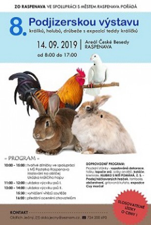 ZO ČSCH Raspenava pořádá dne 15.9.2018 již 7. Podjizerskou výstavu králíků, drůbeže a holubů s expozicí Teddy králíků.